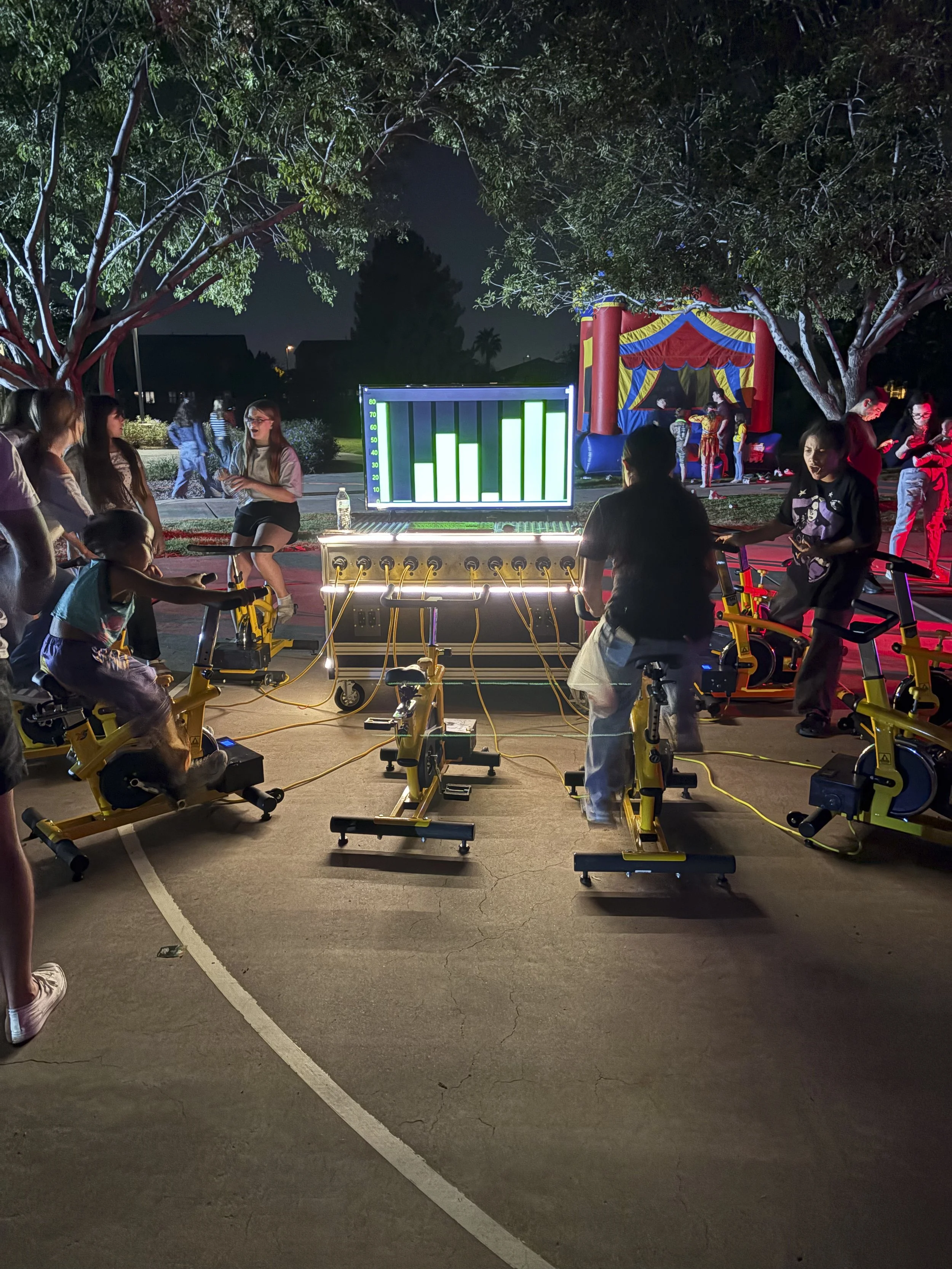 12 person exercise bike generator system that powered the DJ’s sound system at multiple university campuses along the eastern US states.